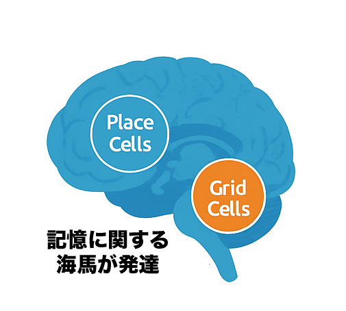 場所を自動的に記憶する特殊な神経細胞が備わっています。